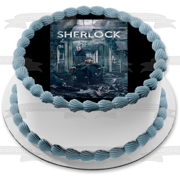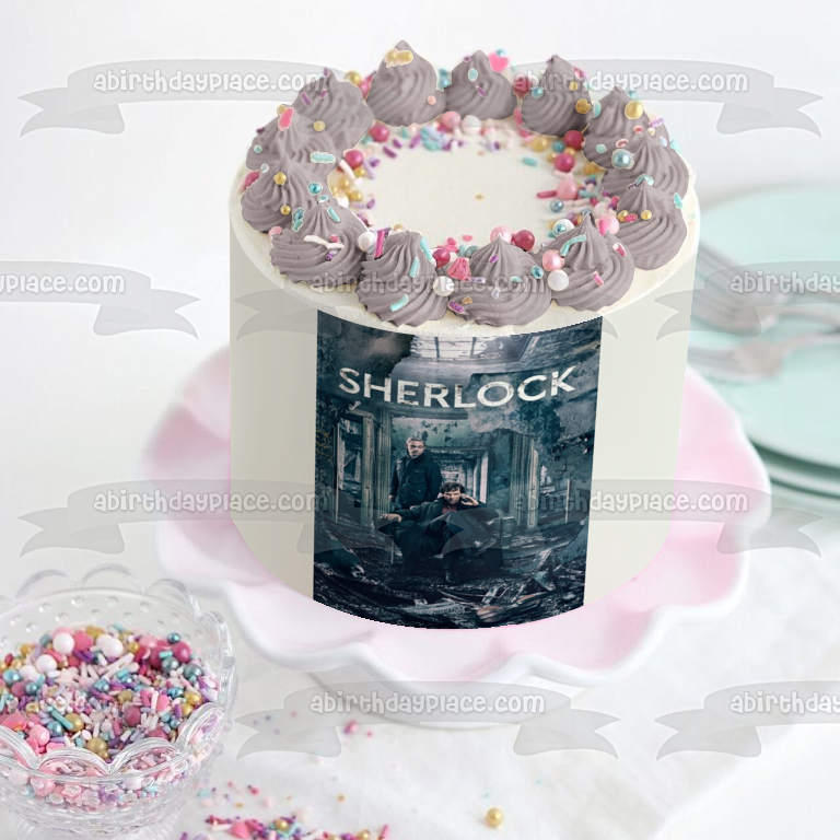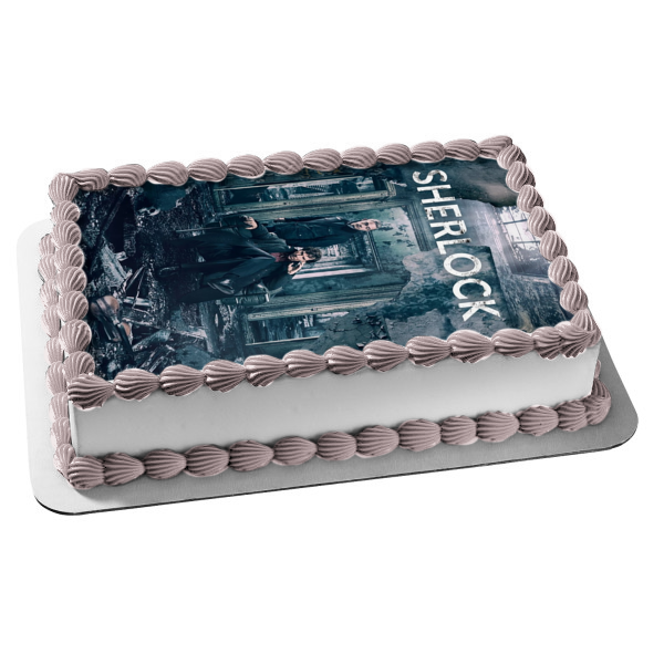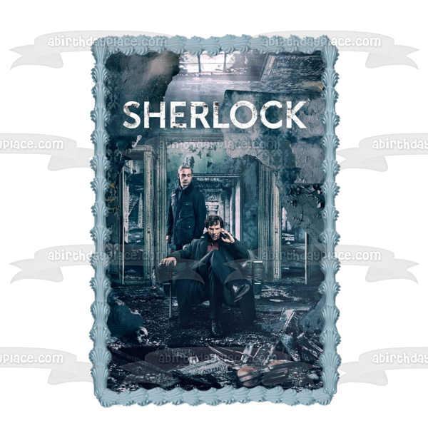 Decorate your Cake with this Sherlock themed Edible Cake Topper Image featuring Sherlock Holmes and John Watson in a Burned Building!