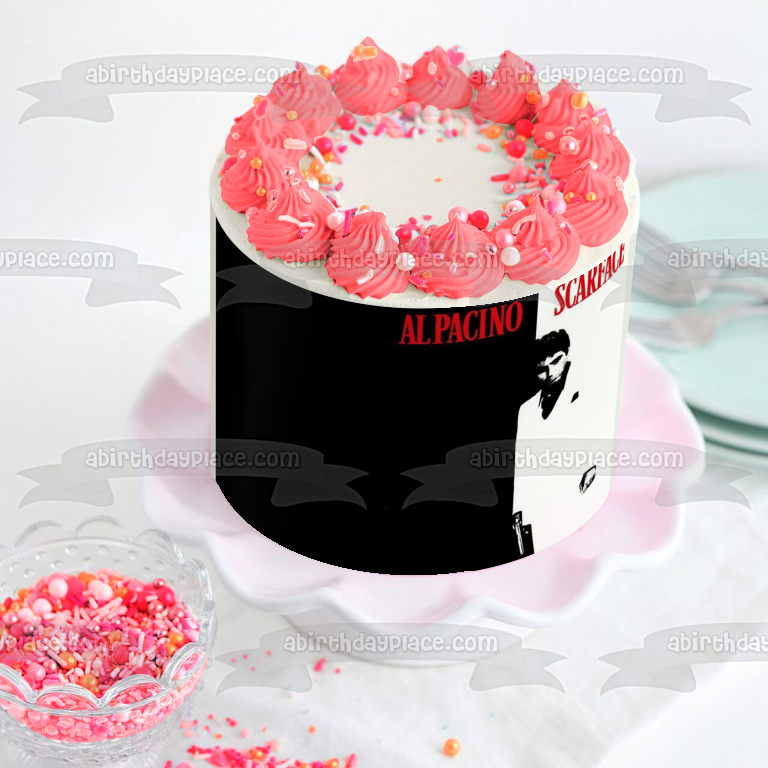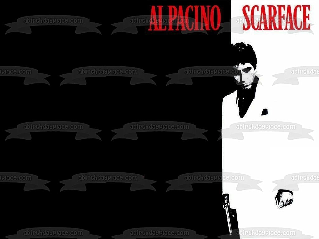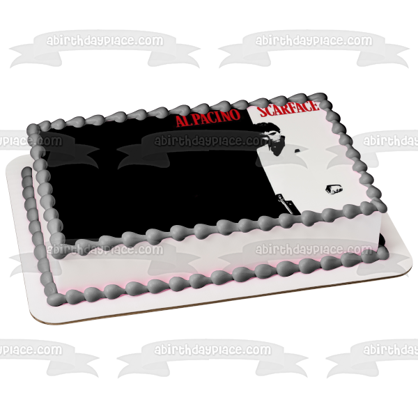 Decorate your Cake with this Scarface themed Edible Cake Topper Image featuring Tony Montana in Black and White!