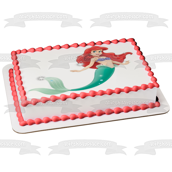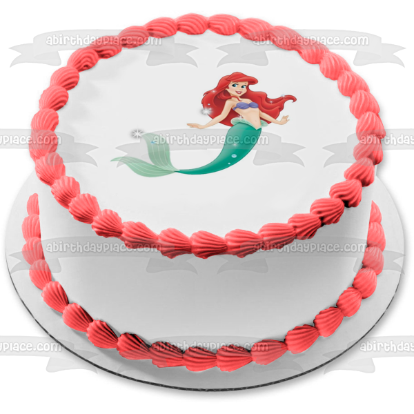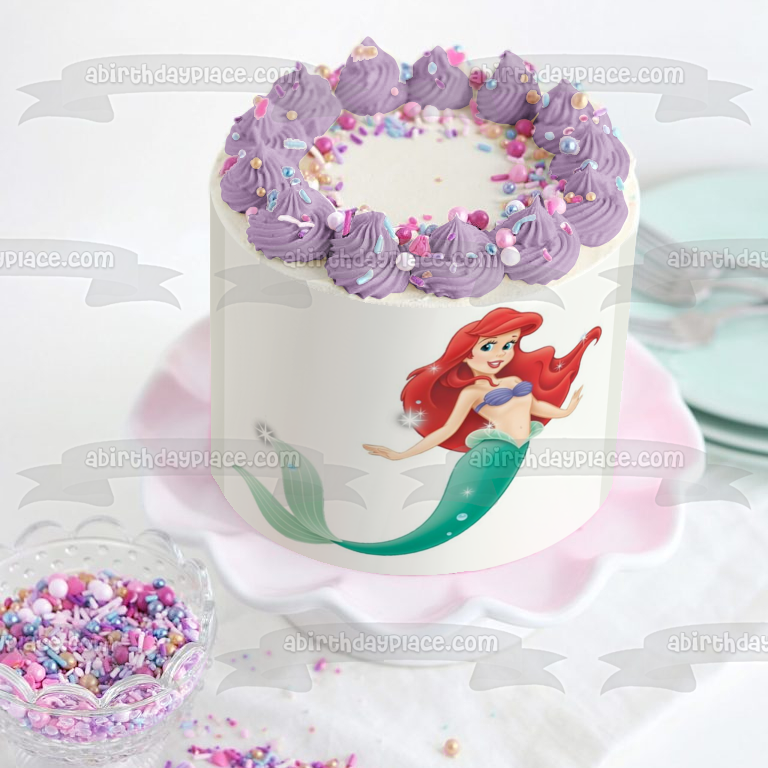 Decorate your Cake with this The Little Mermaid themed Edible Cake Topper Image featuring Ariel surrounded by Sparkles!