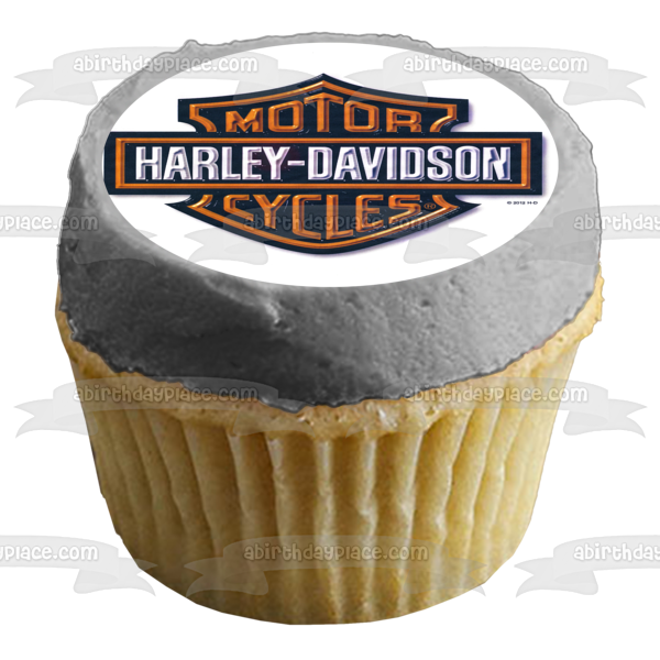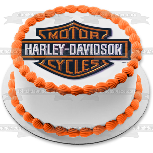 Decorate your Cake with this Harley Davidson themed Edible Cake Topper Image featuring the Orange Logo with a Metal Appearance!