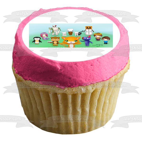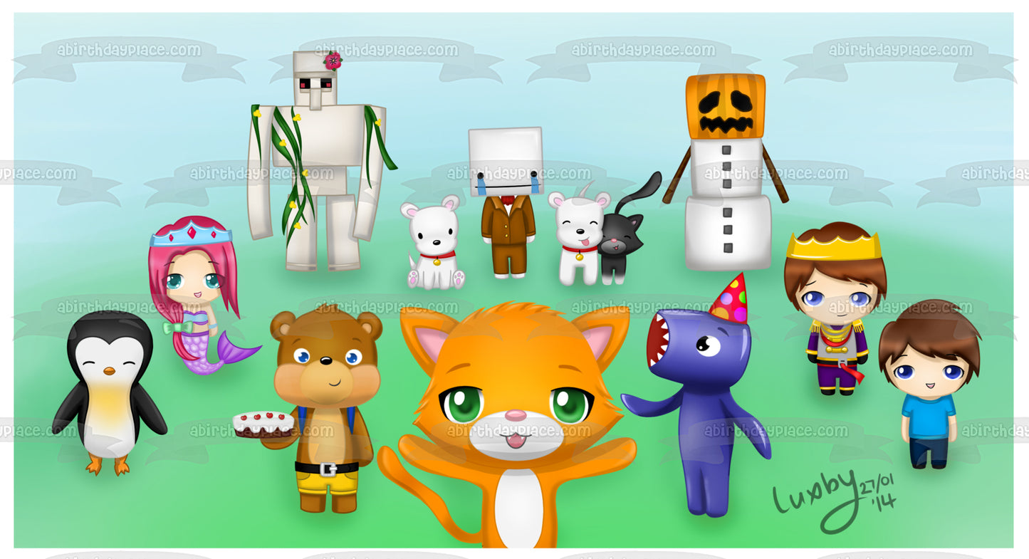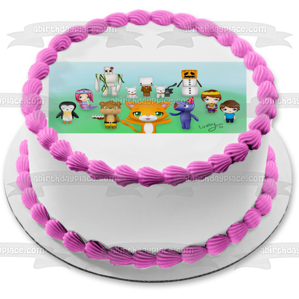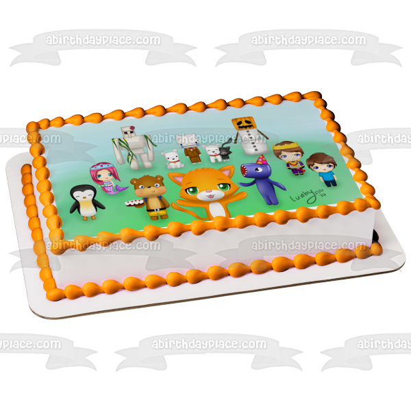 Decorate your Cake with this Mr. Stampy Cat and Friends themed Edible Cake Topper Image featuring Mittens, Henry, Norman, The Snow Golem and Hatty Harrington