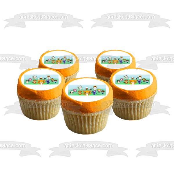 Mr. Stampy Cat and Friends Mittens Henry Norman the Snow Golem Hatty Hatington Edible Cake Topper Image ABPID27249