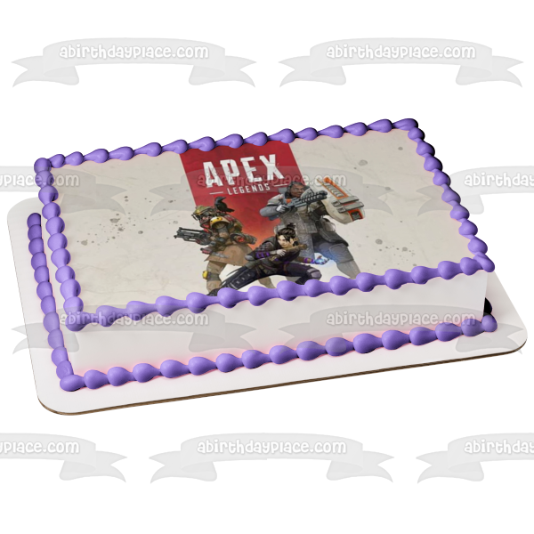 Decorate your Cake with this Apex Legends themed Edible Cake Topper Image featuring Wraith, Gibraltar and Bloodhound!