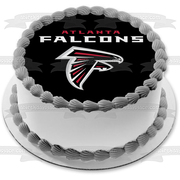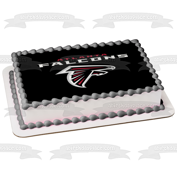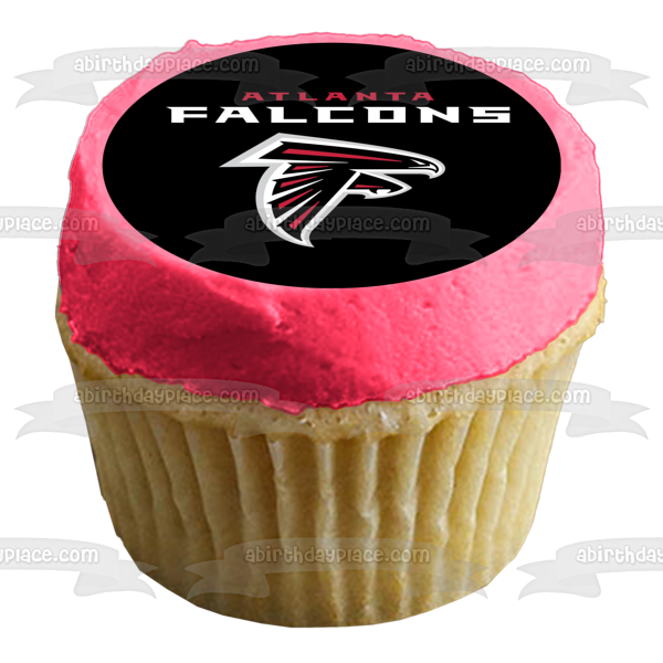 ducwt NFL themed Edible Cake Topper Image featuring the Atlanta Falcons Pink and White Logo with a Black Background!