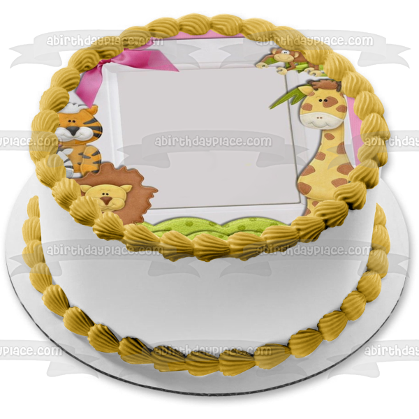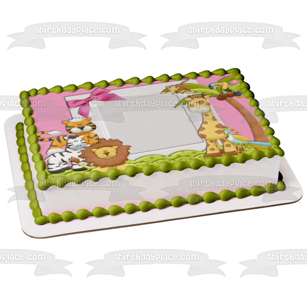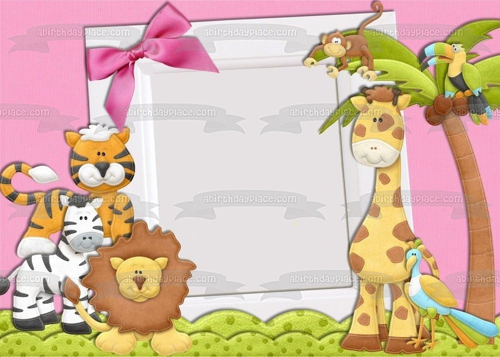 Baby Shower Baby Jungle Animals Zebra Tiger Lion Giraffe Monkey Parrot Edible Cake Topper Image Frame ABPID27382