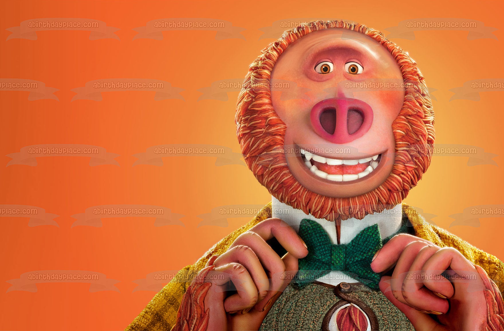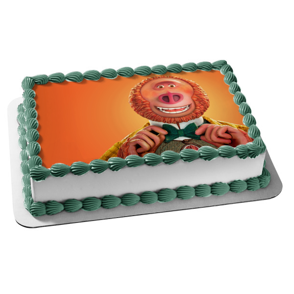 Decorate your Cake with this Missing Link themed Edible Cake Topper Image featuring Mr. Link and an Orange Background!