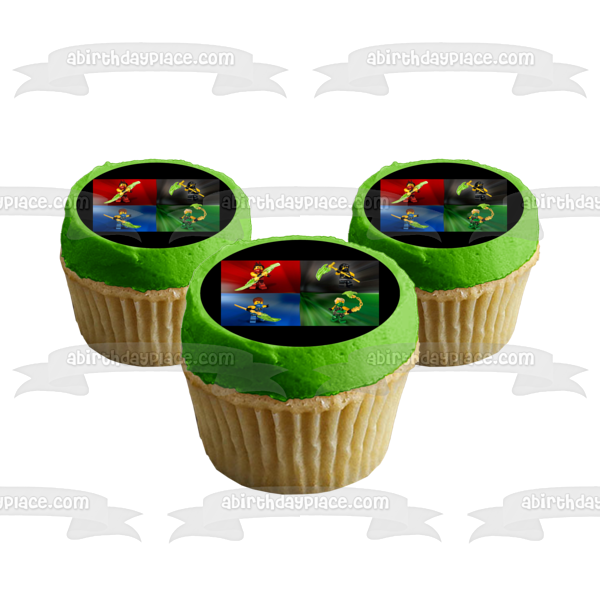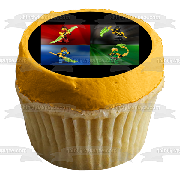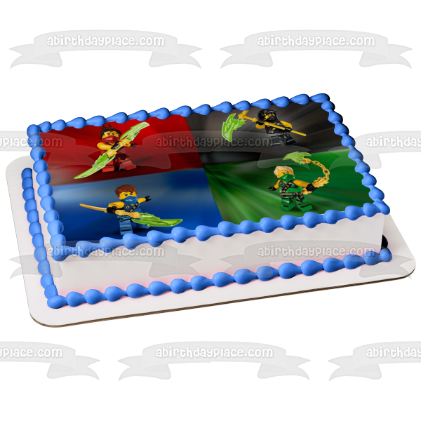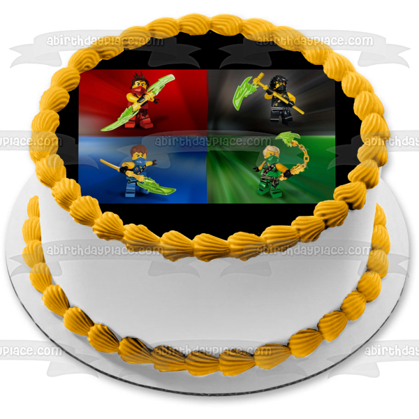 Decorate your Cake with this LEGO Ninjago Tournament themed Edible Cake Topper Image featuring Lloyd, Kai, Jay and Cole!