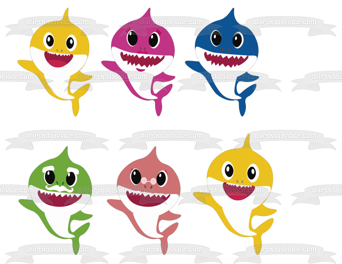 Sharks Cartoon Yellow Blue Green Pink Edible Cake Topper Image ABPID27606
