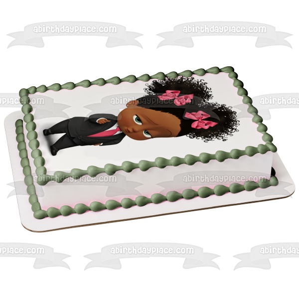 African American Girl Boss Baby Edible Cake Topper Image ABPID27726