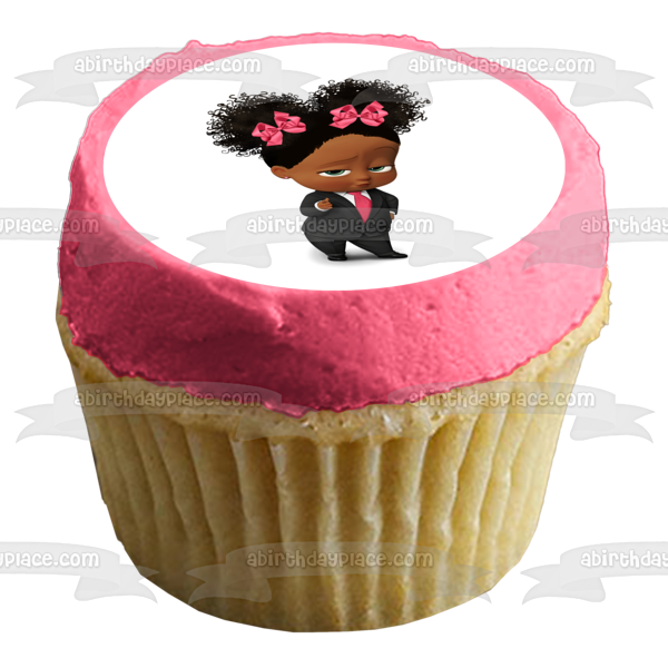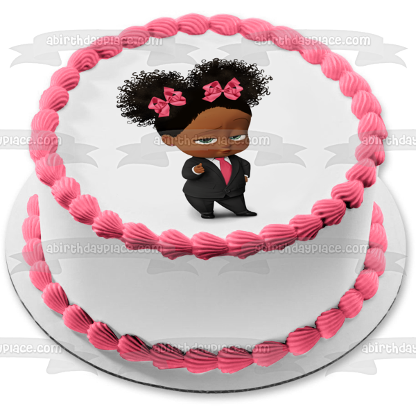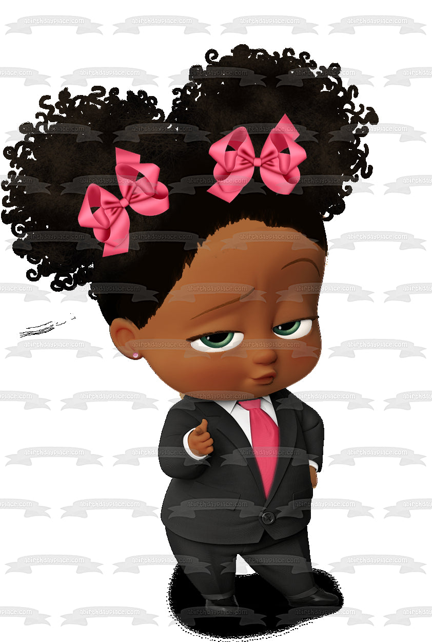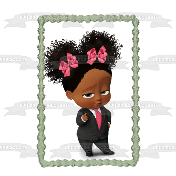 Decorate your Cake with this African American Girl Boss Baby themed Edible Cake Topper Image!