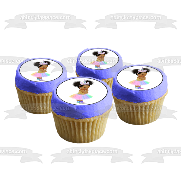 Decorate your Cake with this African American Baby Girl themed Edible Cake Topper Image featuring her in a Tye Dye Unicorn Outfit!