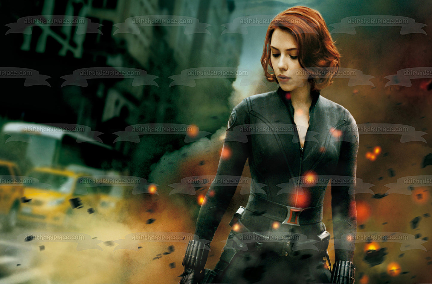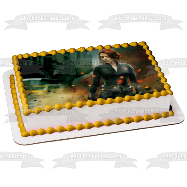 Decorate your cake with this Marvel's The Avengers themed image featuring Black Widow played by Scarlett Johansson.