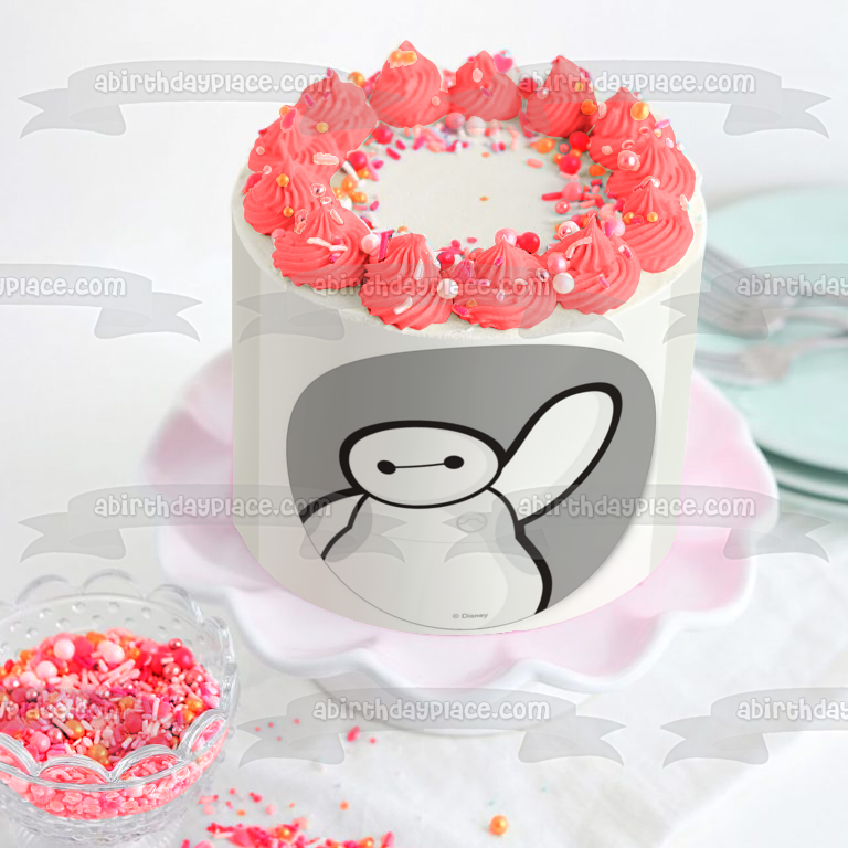 Decorate your Cake with this Big Hero 6 Baymax Vector themed Edible Cake Topper Image featuring White Baymax Waving!