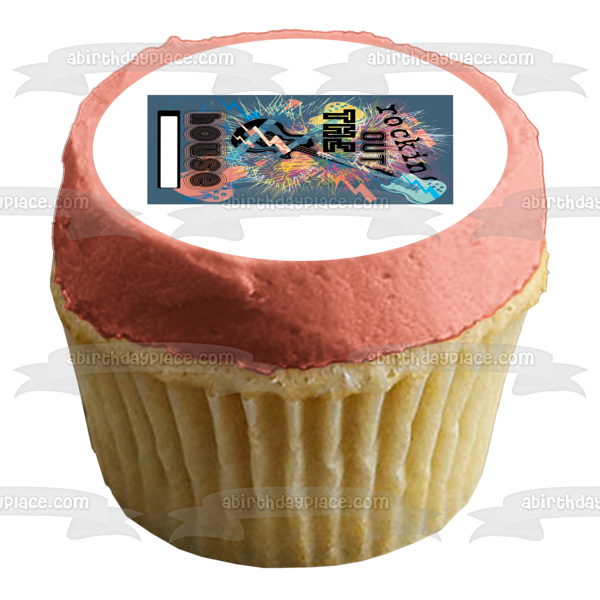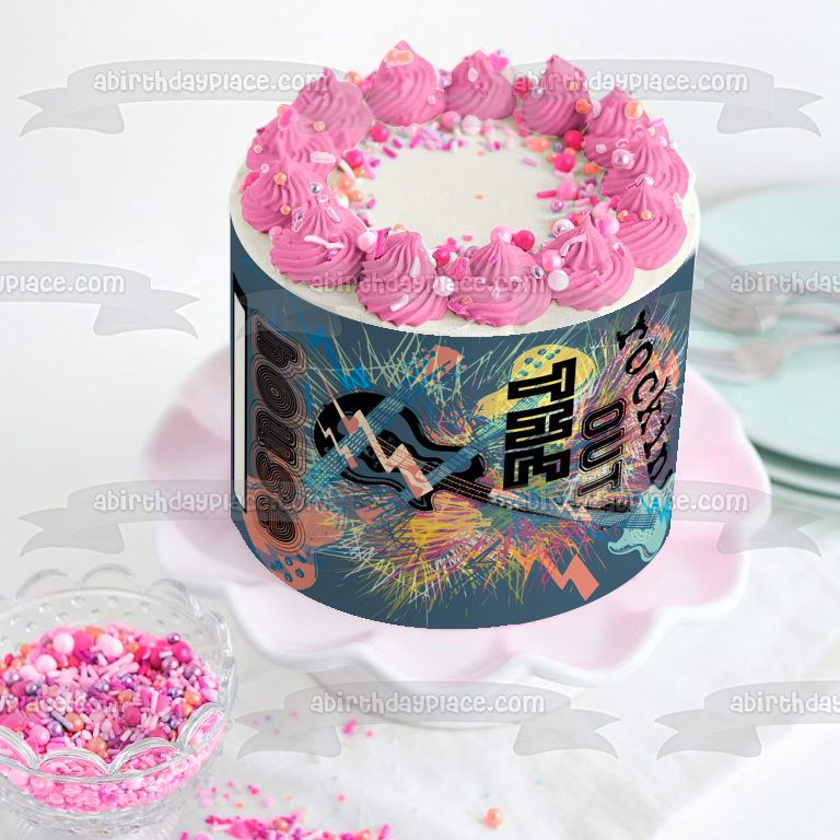 Decorate your Cake with this Rockin Out the House themed Edible Cake Topper Image featuring Electric Guitars!