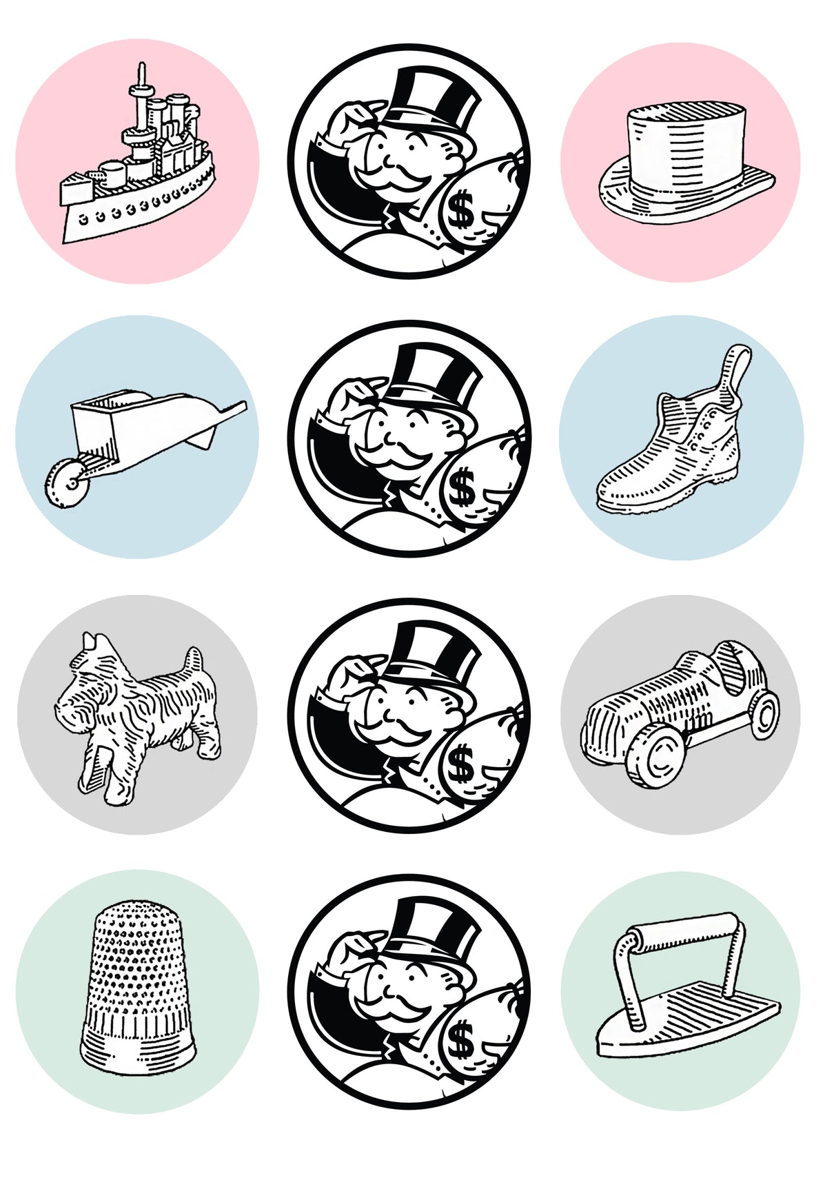 Monopoly Game Pieces Hat Shoe Ship Wheelbarrow Car Thimble Iron Edible Cupcake Topper Images ABPID49805