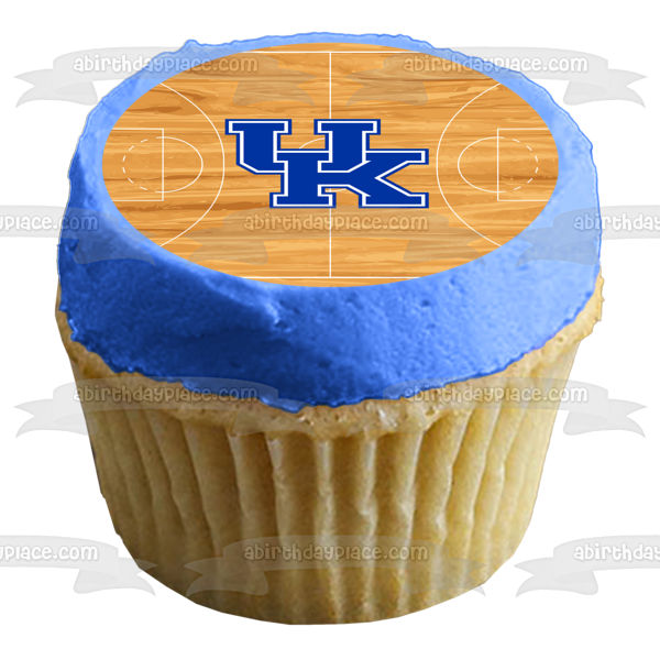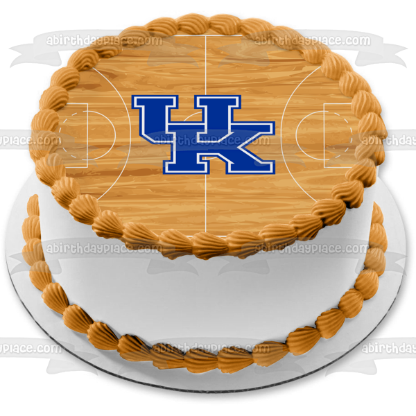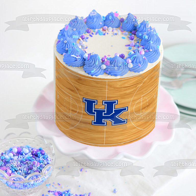 Decorate your Cake with this University of Kentucky themed Edible Cake Topper Image featuring their Logo utop a Basketball Court!