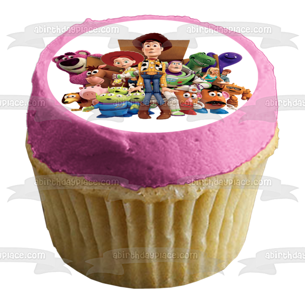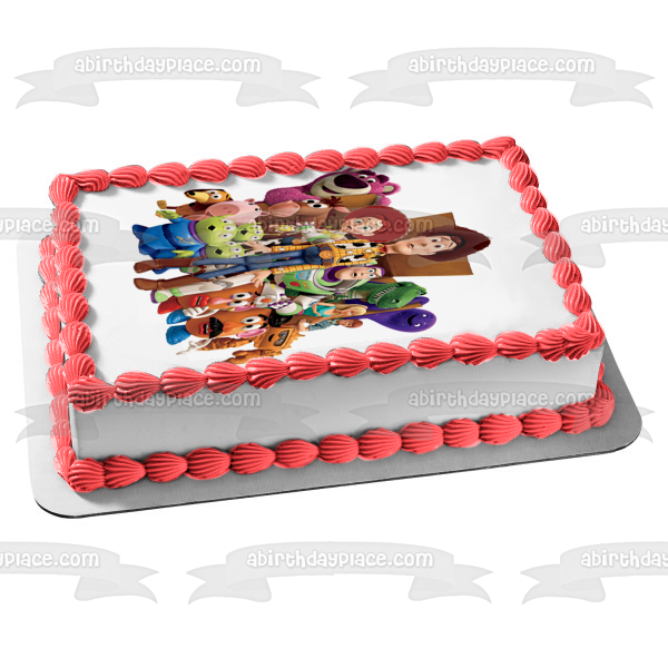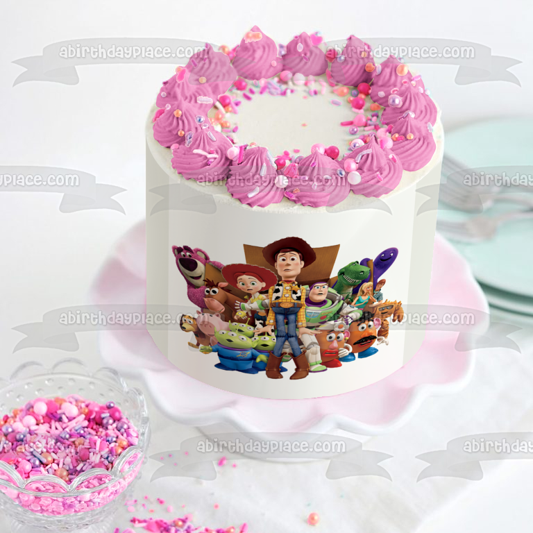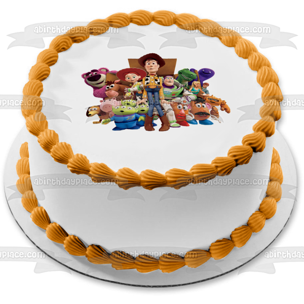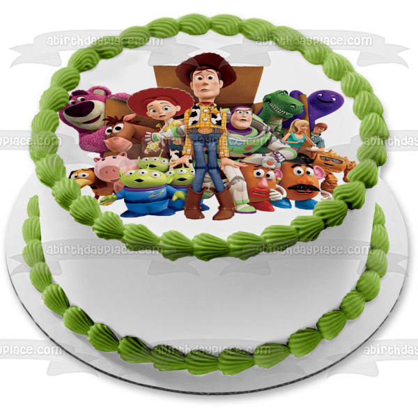 Decorate your Cake with this Toy Story themed Edible Cake Topper Image featuring Woody, Buzz Lightyear, Mr. Potato Head, Mrs. Potato Head, Bo Peep ,Rex and Hamm!