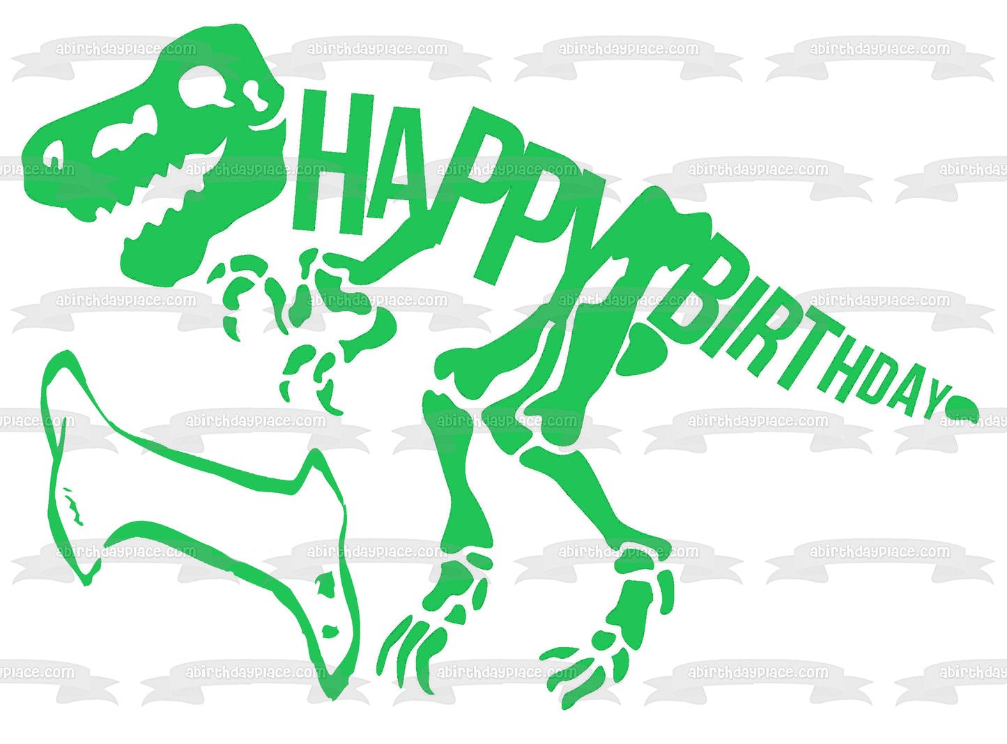 Green Dinosaur Skeleton Happy Birthday Green Bone Edible Cake Topper Image ABPID50290