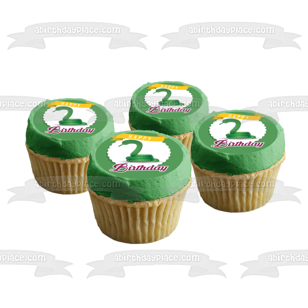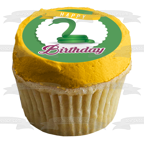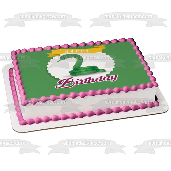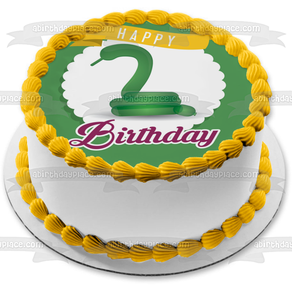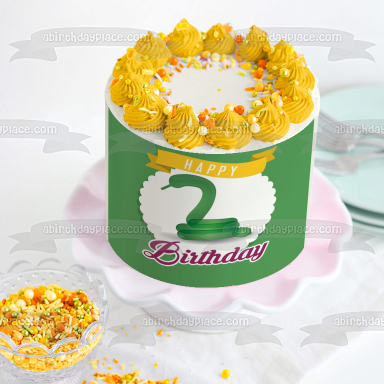 Decorate your Cake with this Snake Themed Happy 2nd Birthday themed Edible Cake Topper Image featuring a Green Background!