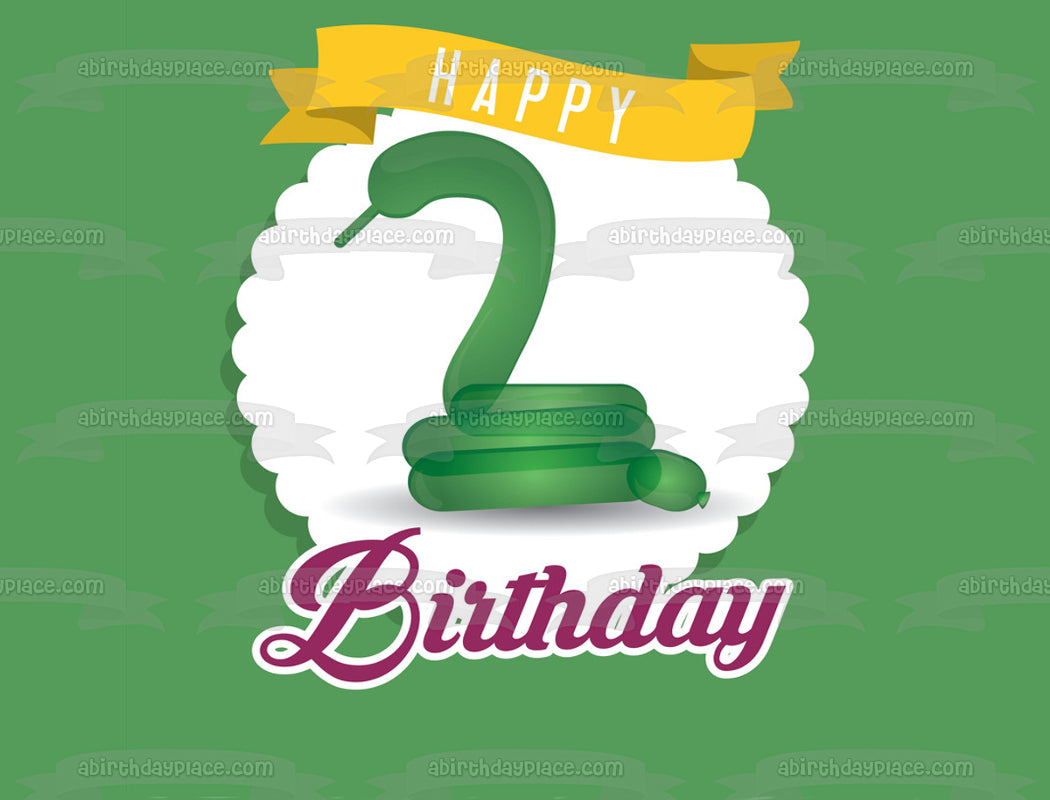 Happy 2nd Birthday Snake Theme Green Background Edible Cake Topper Image ABPID50295