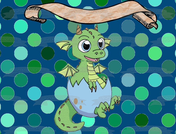 Celebrate your Little Dragon with this Baby Dragon edible cake topper. Add a personalized message to the scroll: Ex Welcome Baby Jones, Happy 1st Birthday Xander, etc