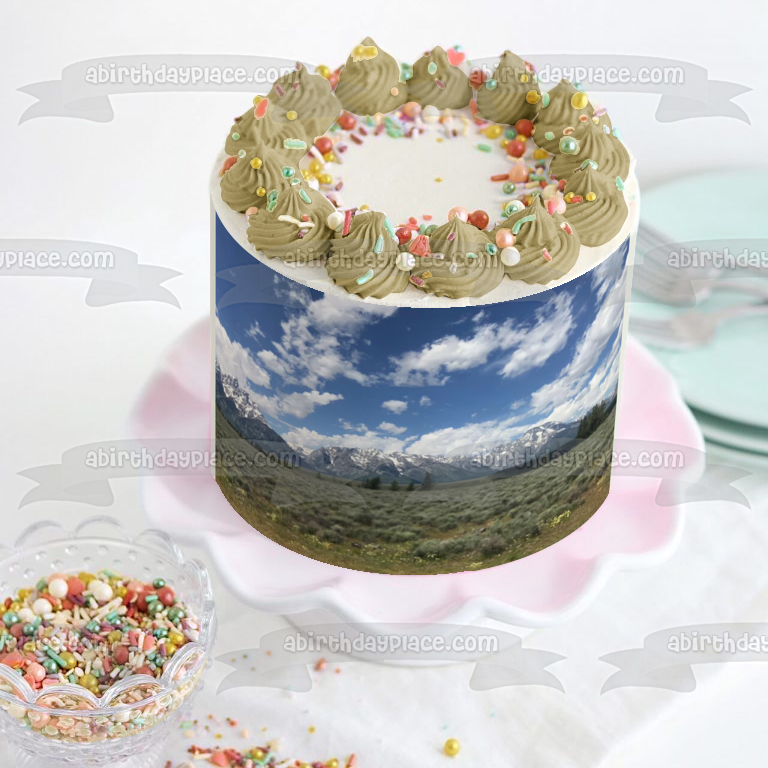 Decorate you Cake with these Grand Teton Mountains themed Edible Cake Topper Image featuring them in the Grand Teton National Park!
