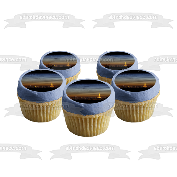Decorate your Cake with this Solstice Night in Paris themed Edible Cake Topper Image featuring the Eiffel Tower Lit Up!