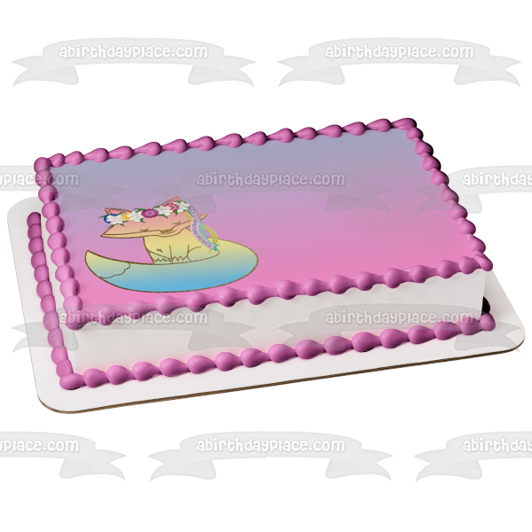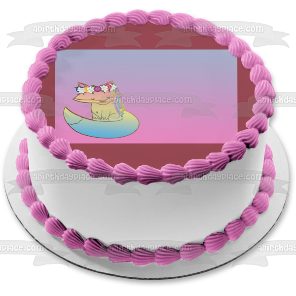 Pastel Glitter Fox Flower Crown Pink Purple Background Edible Cake Topper Image ABPID50312