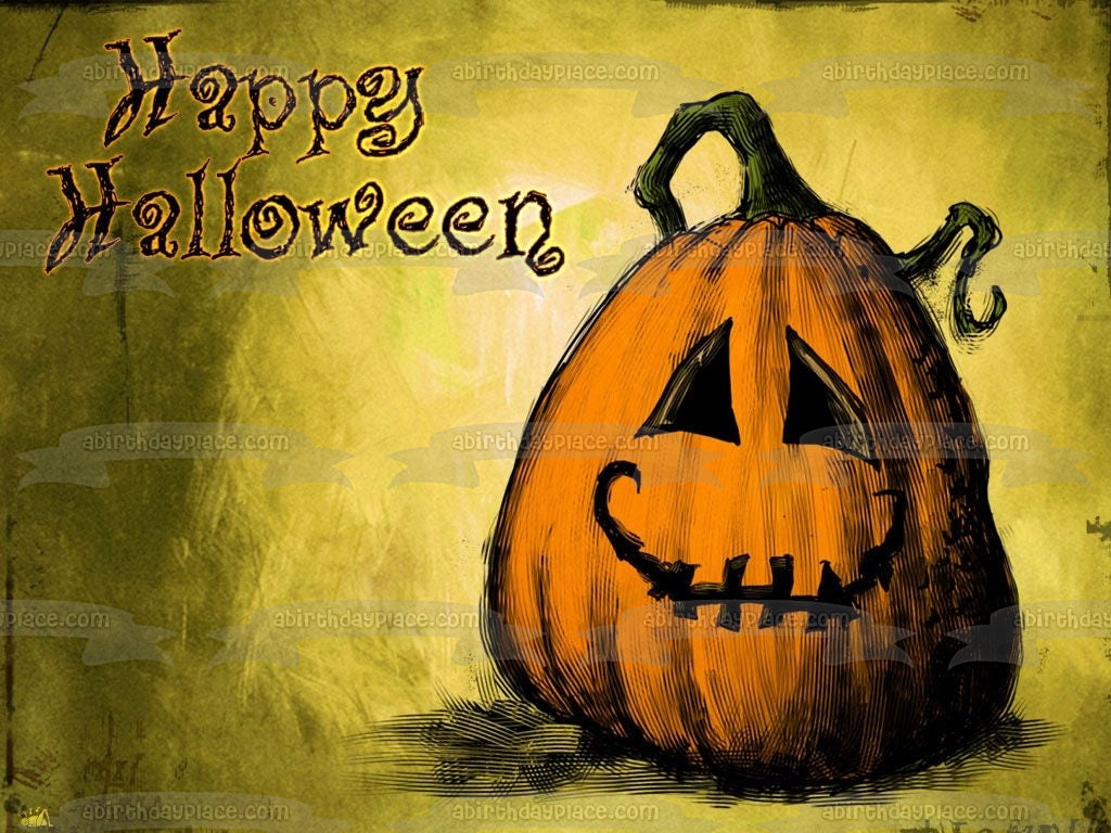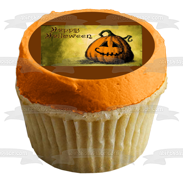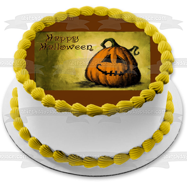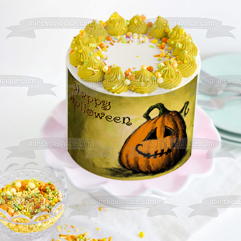 Happy Halloween Pumpkin Jack-O-Lantern Edible Cake Topper Image ABPID50337
