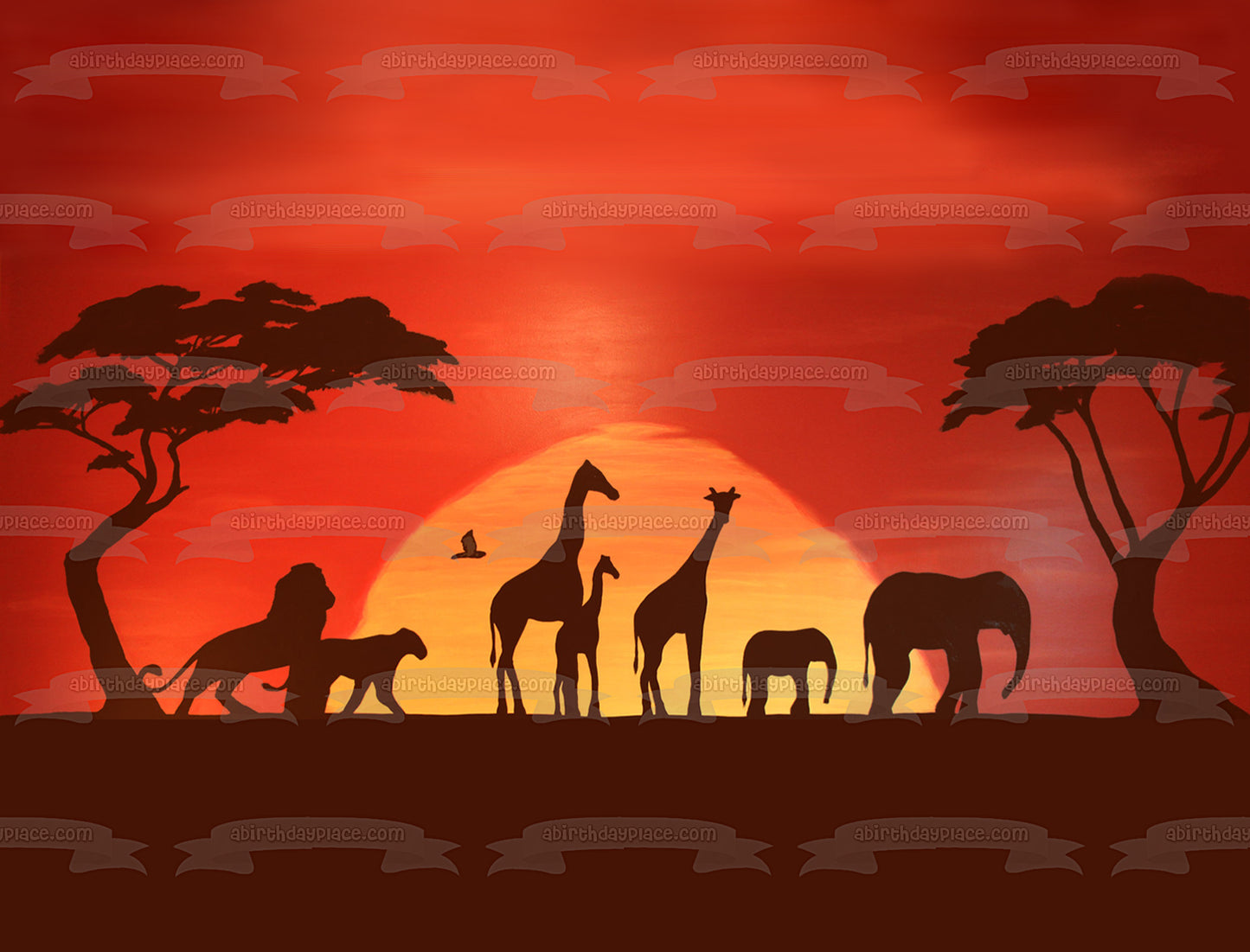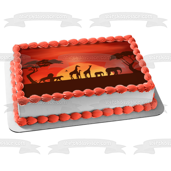 Disney The Lion King Animal Silhouettes Sunset Background Edible Cake Topper Image or Strips ABPID50381
