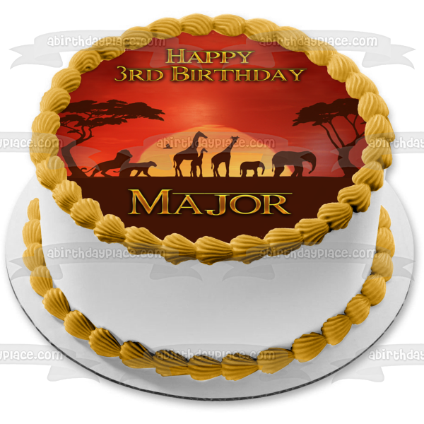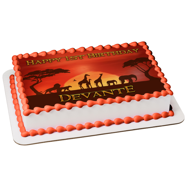 Decorate your Cake with this The Lion King themed Edible Cake Topper Image featuring Animal Silhouettes with a Sunset Background!