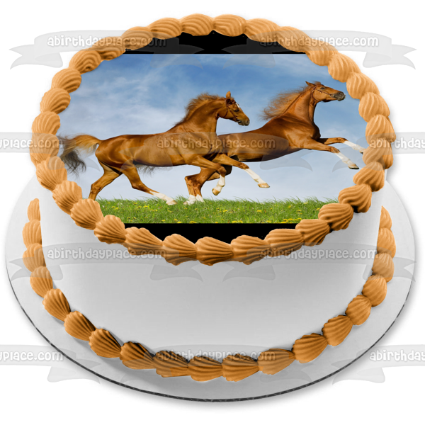 Prance into your party with this Prancing Horses edible cake topper. Add a birthday message to make it a beautiful day!