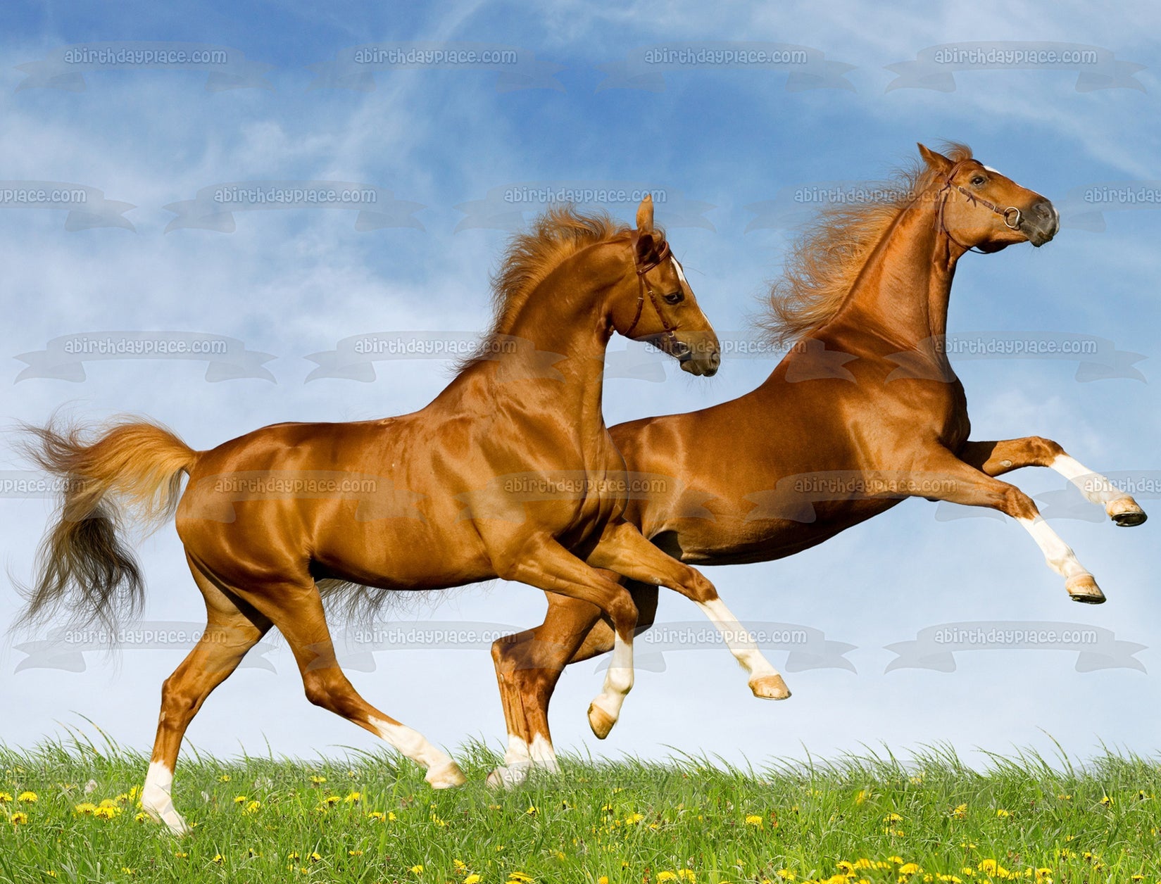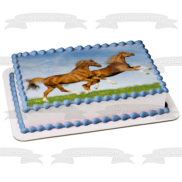 Horses Prancing Brown Horses Edible Cake Topper Image ABPID50396