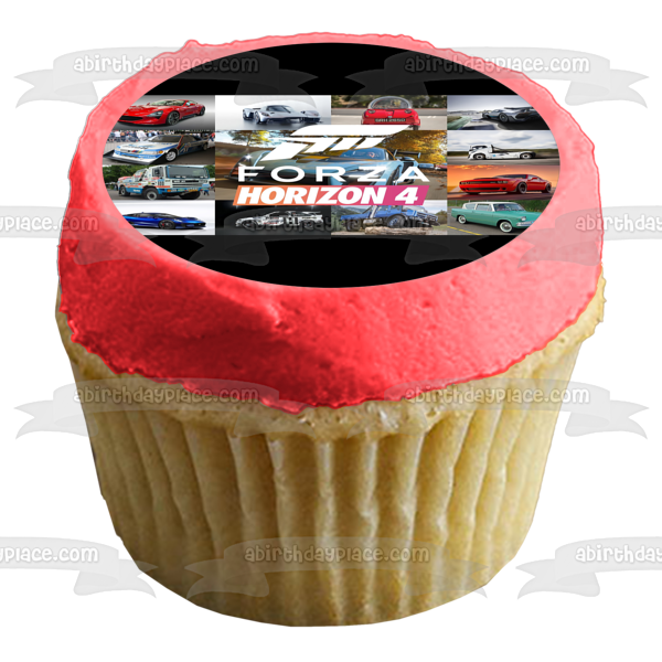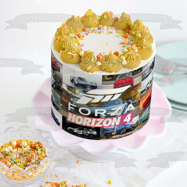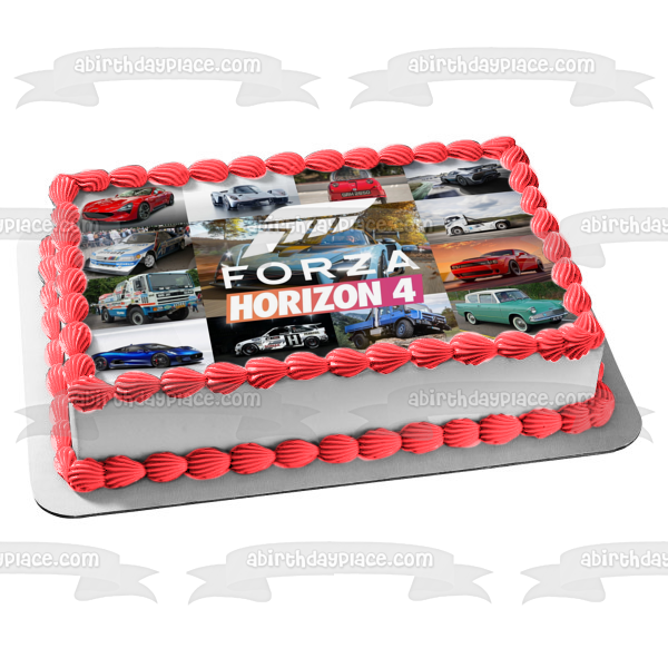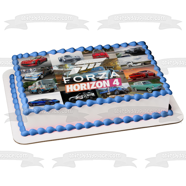 Decorate your Cake with this Forza Horizon 4 themed Edible Cake Topper Image featuring Racing Cars including the Aston Martin DB5!