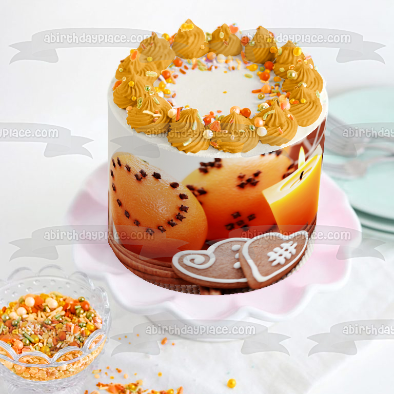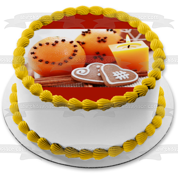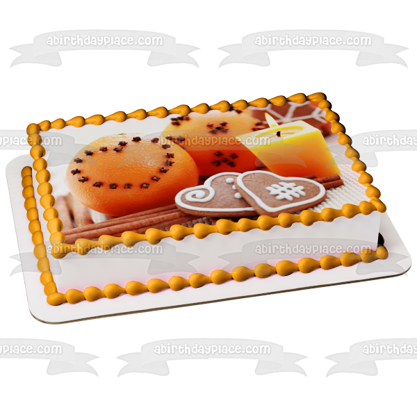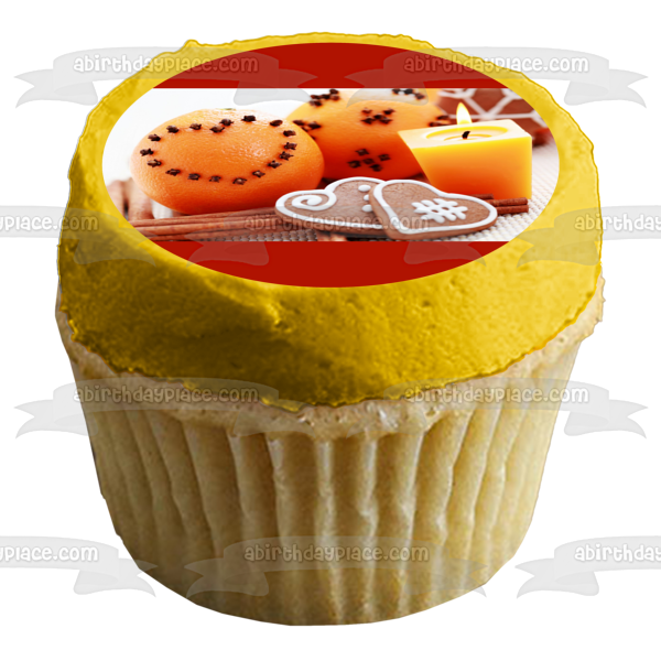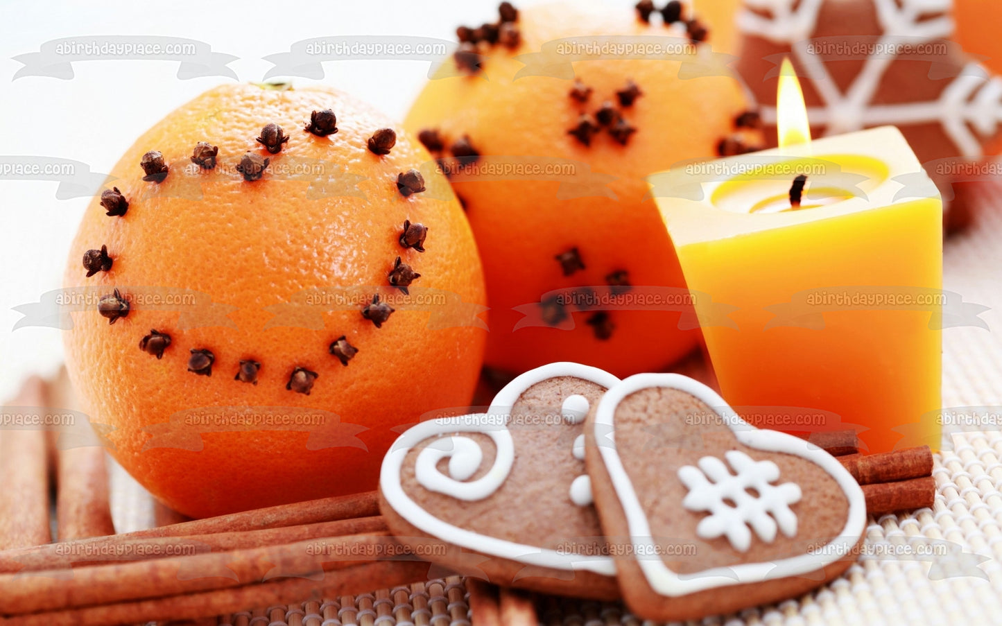 Christmas Candle Orange Cloves Gingerbread Cookies Cinnamon Edible Cake Topper Image ABPID50594