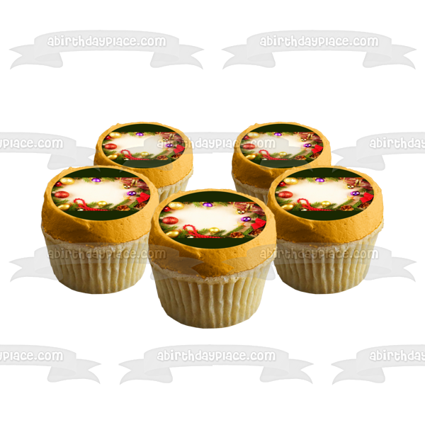 Christmas Wreath Ribbon Ball Ornaments Edible Cake Topper Image ABPID50602