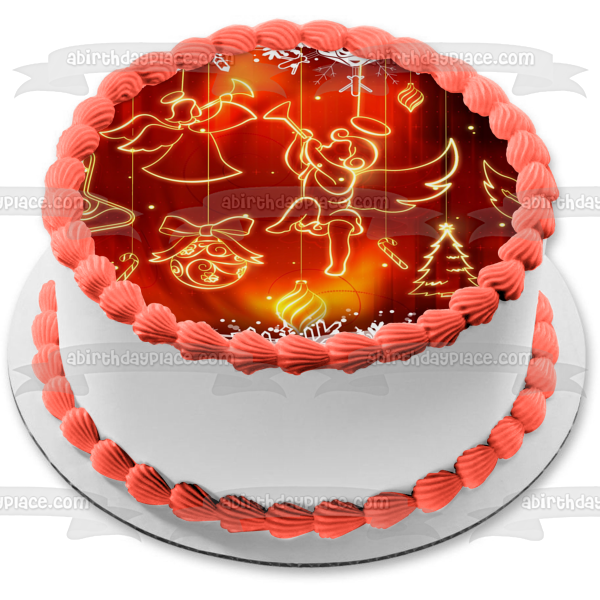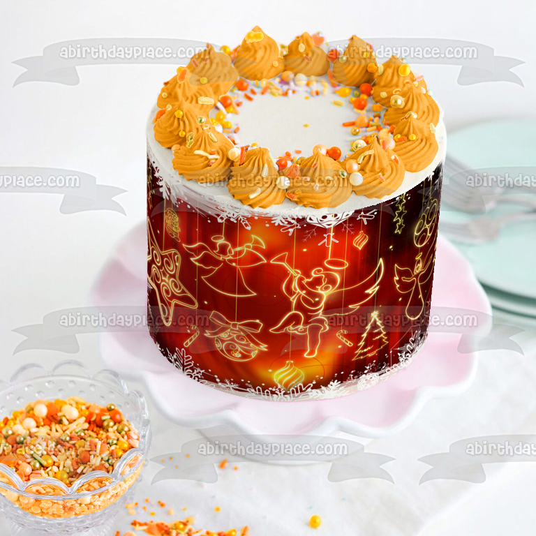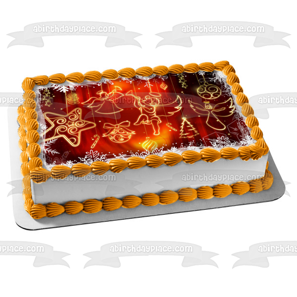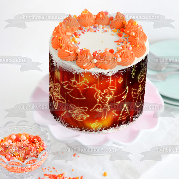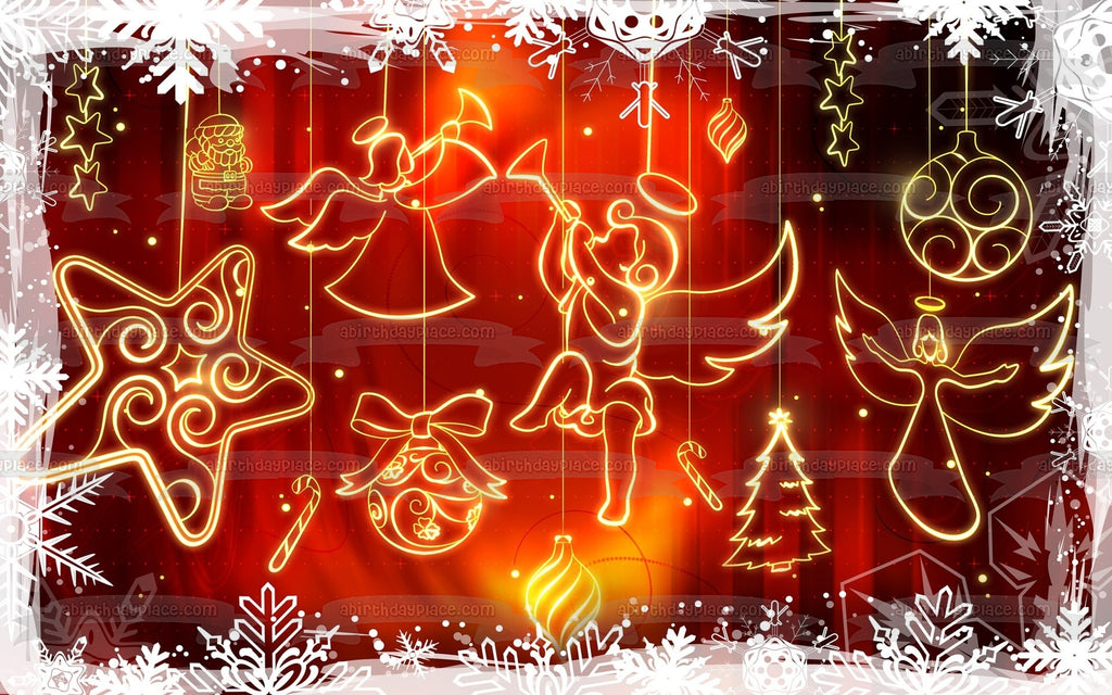 Christmas Angels Ball Ornaments Stars Christmas Tree Edible Cake Topper Image ABPID50638