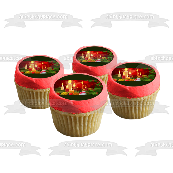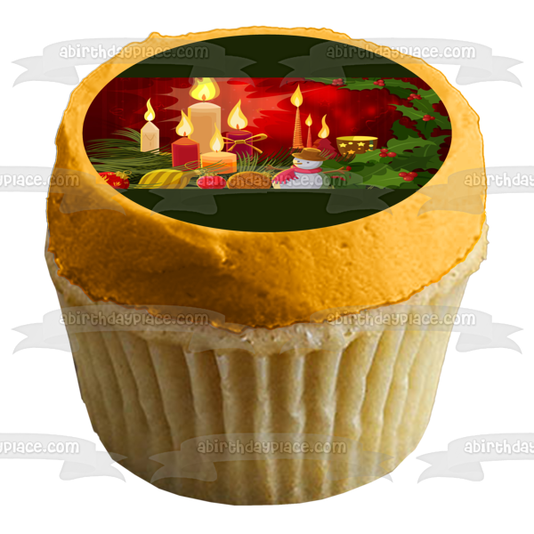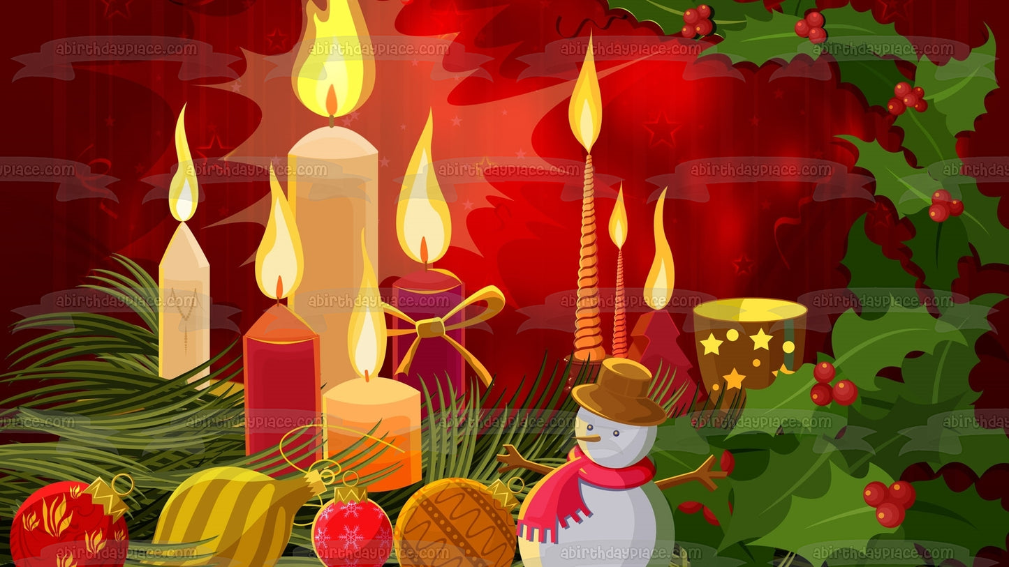 Christmas Candle Holly Snowman Ball Ornament Edible Cake Topper Image ABPID50670