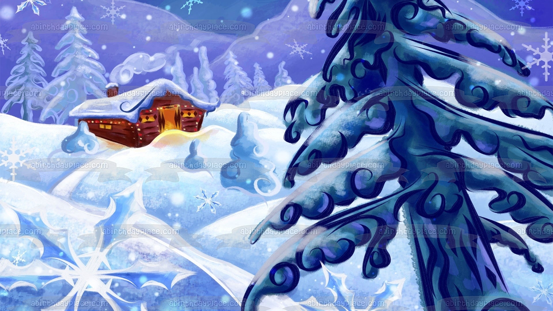 Christmas Snow Covered Cabin Edible Cake Topper Image ABPID50672