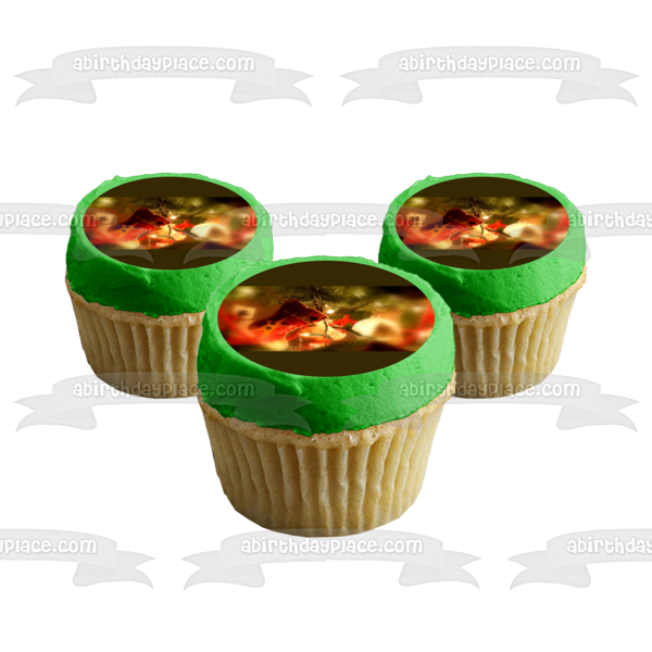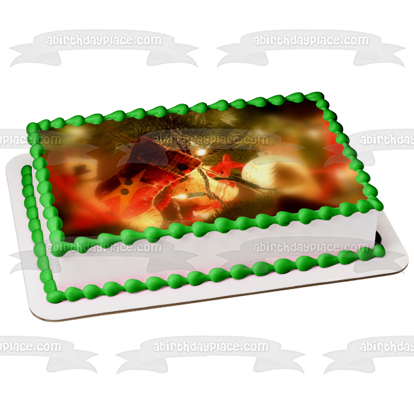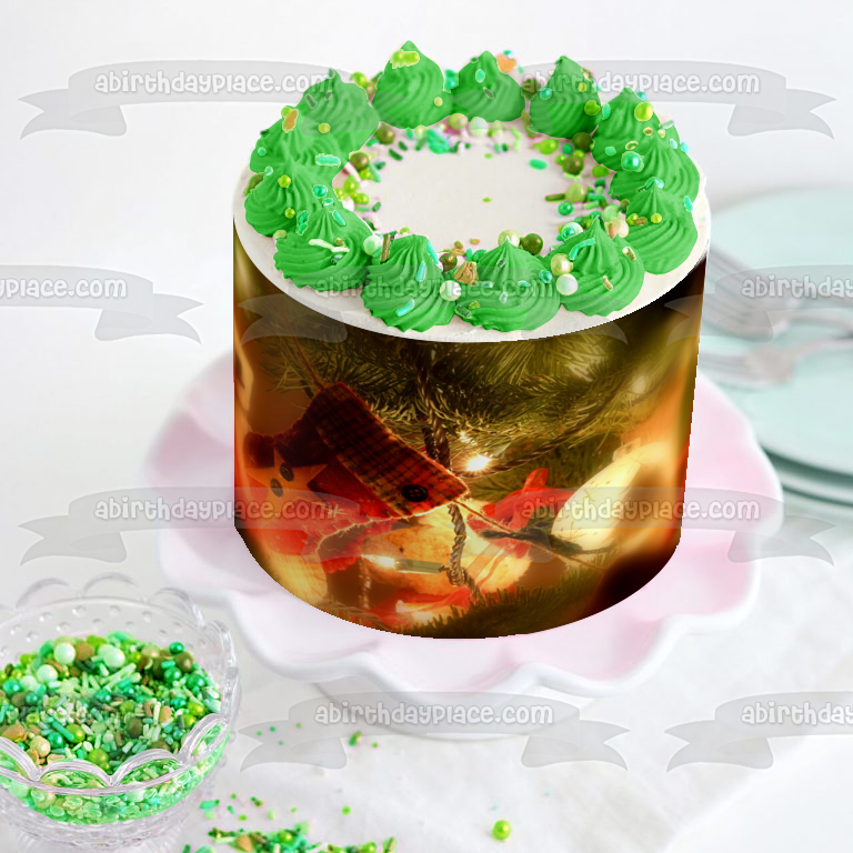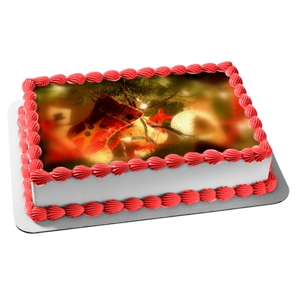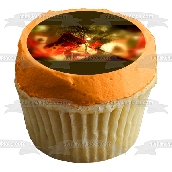 Christmas Tree Christmas Lights Stocking Ball Ornament Edible Cake Topper Image ABPID50679