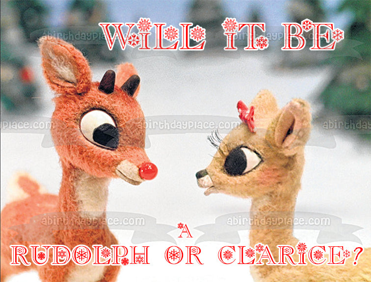 Rudolph the Rednose Reindeer Gender Reveal Edible Cake Topper Image ABPID50711
