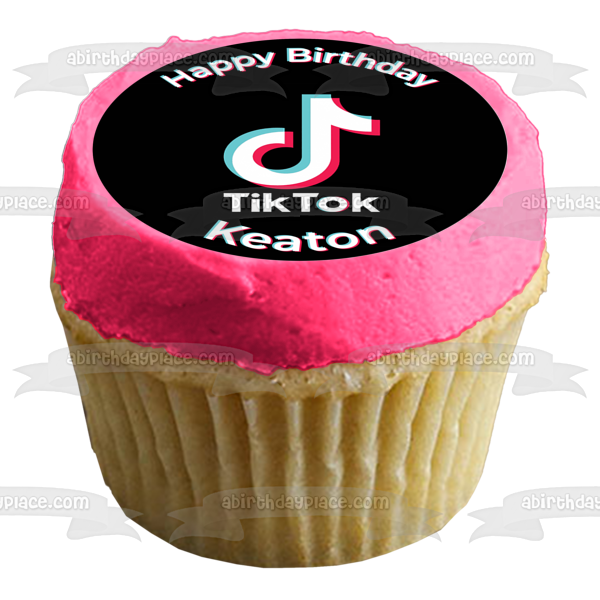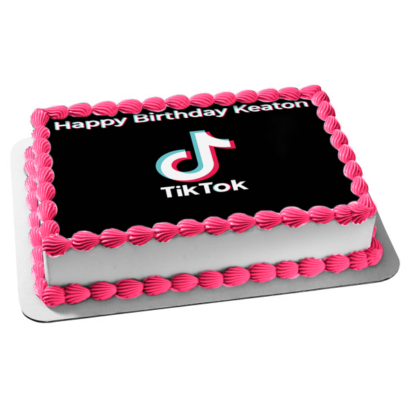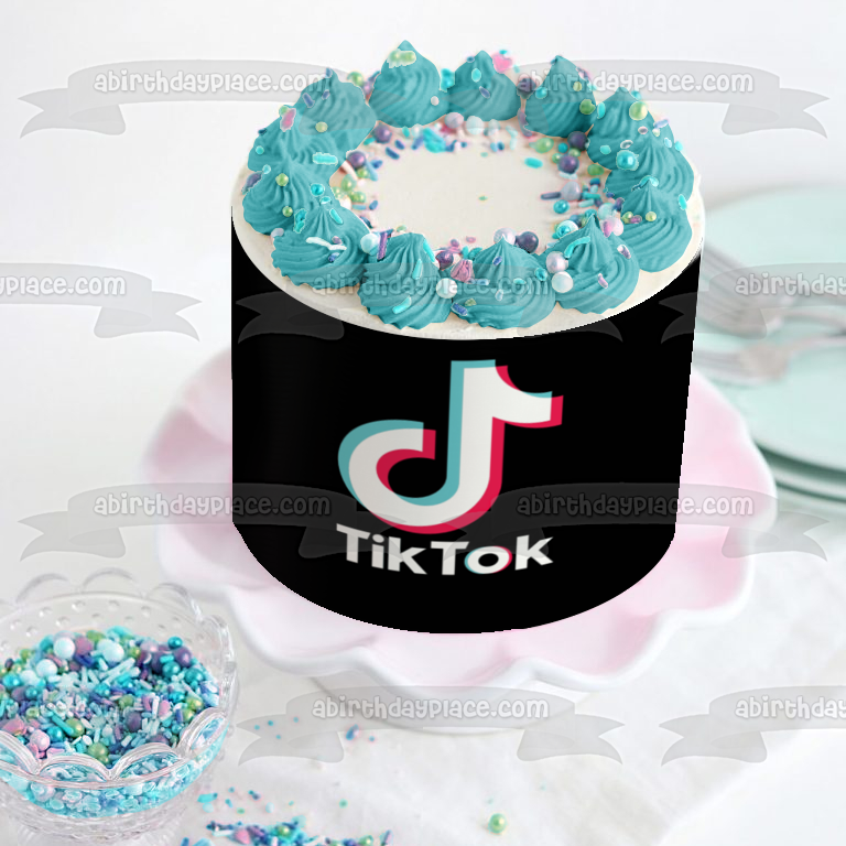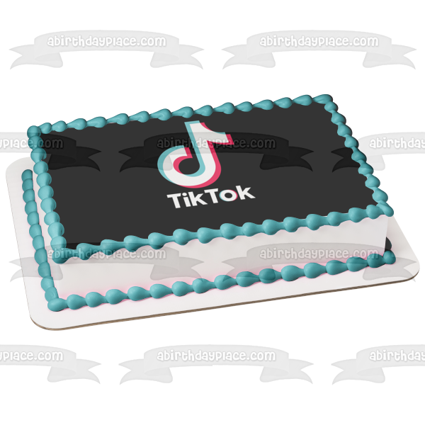 Decorate your Cake with this Tik Tok themed Edible Cake Topper Image featuring the Tik Tok Logo and a Black Background!
