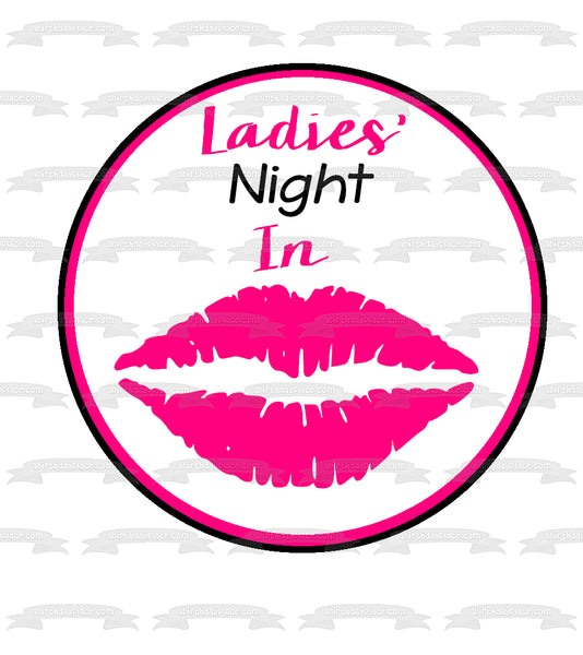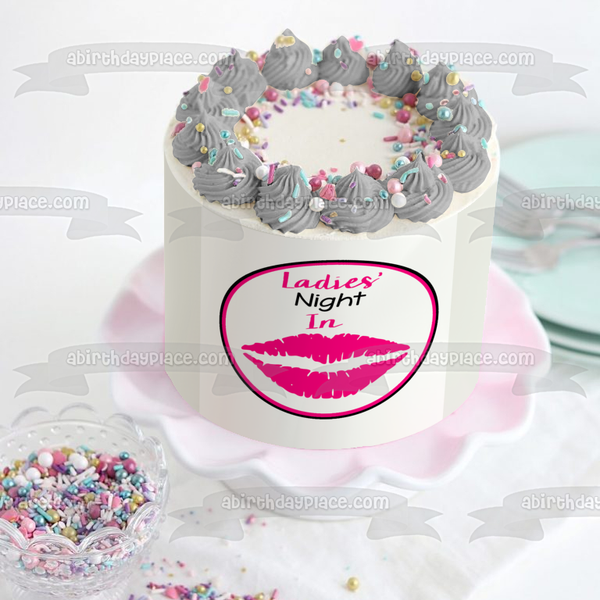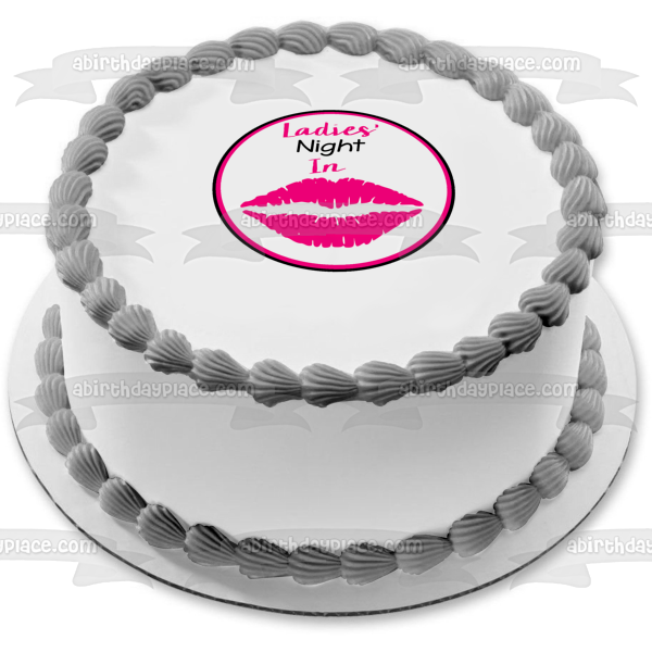 Decorate your Cake with this Ladie's Night In themed Edible Cake Topper Image featuring a Pink Lips Kiss!