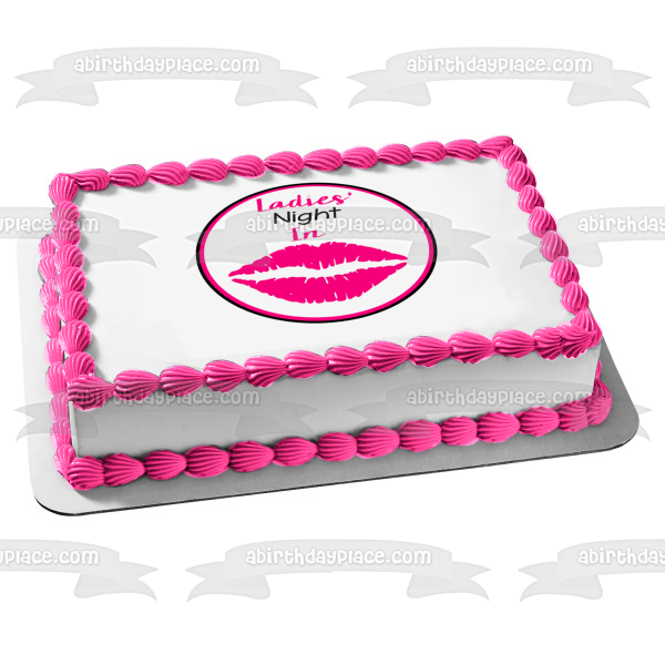 Decorate your Cake with this Ladie's Night In themed Edible Cake Topper Image featuring a Pink Lips Kiss!