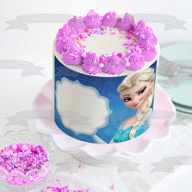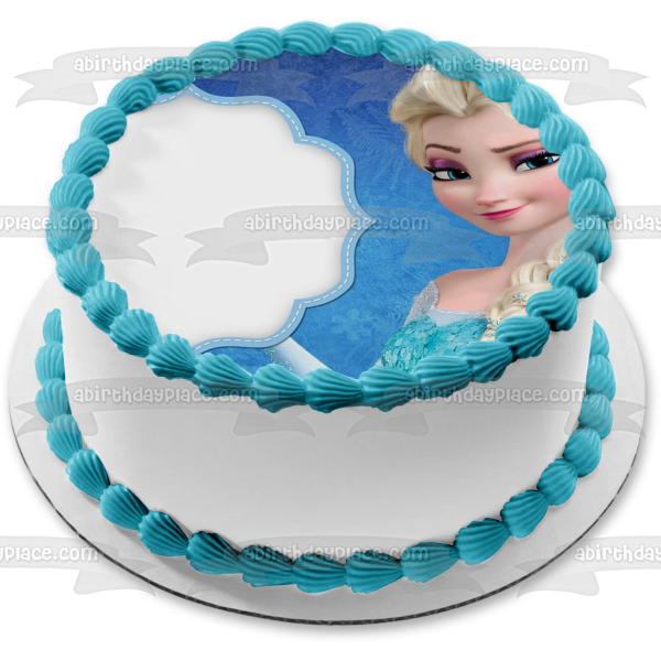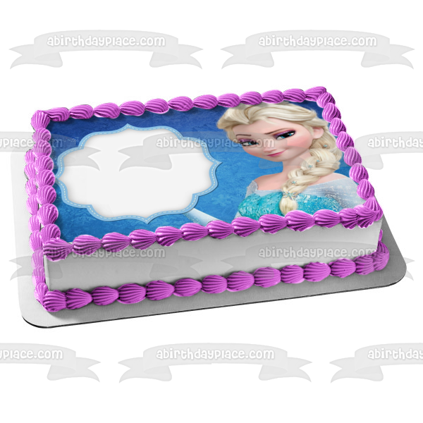 Decorate your Cake with this Disney Frozen themed Edible Cake Topper Image featuring Disney Princess Elsa and a Frame to add Your photo!