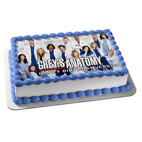Decorate your Cake with this Grey's Anatomy themed Edible Cake Topper Image featuring Teddy, Derek, Cristina, Miranda, Arizona, April, Owen, Jackson, Teddy, Mark, Lexi, Callie and Alex !