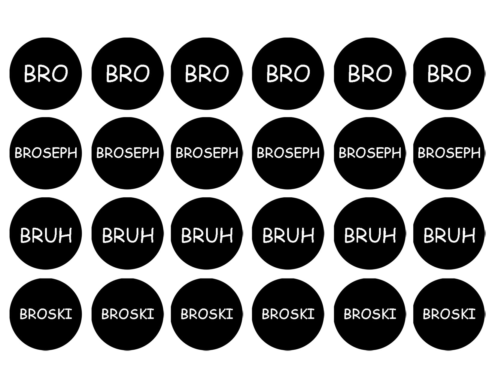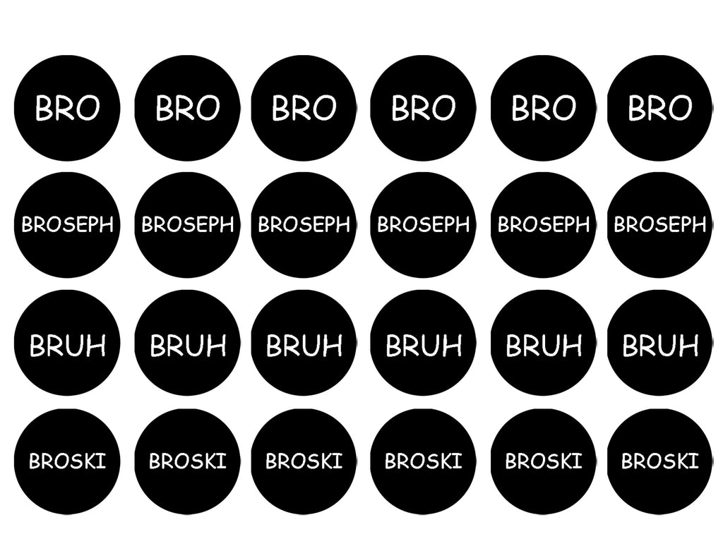 Decorate your Cupcakes with these Black and White 24 Count Brotherly Love themed Edible Cupcake Topper Images featuring Bro, Broseph, Bruh and Broski!