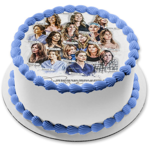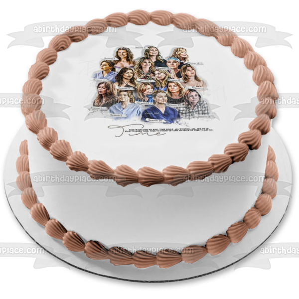 Decorate your Cake with this Grey's Anatomy Over the Years themed Edible Cake Topper Image featuring Assorted Season Pictures of Meredith!