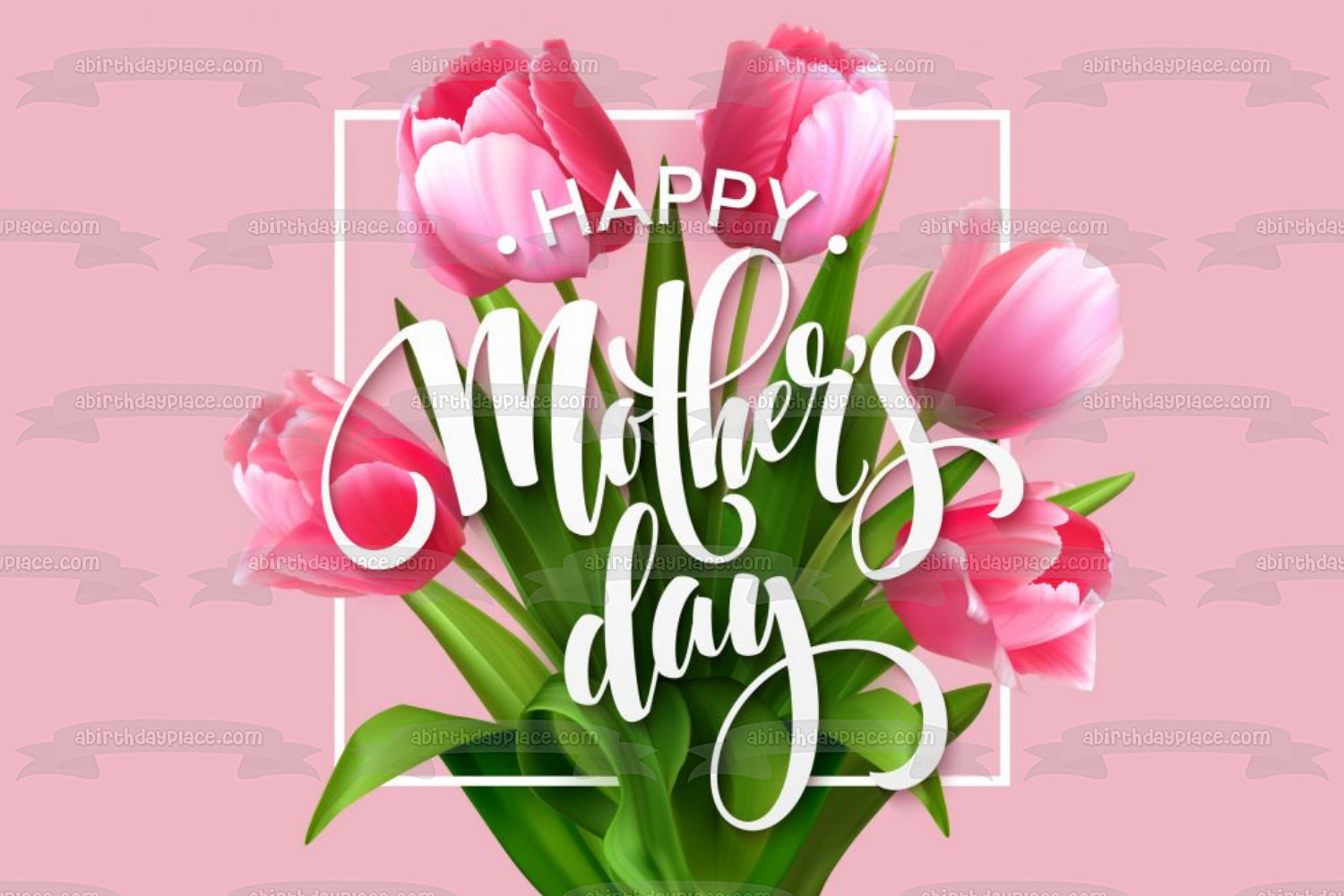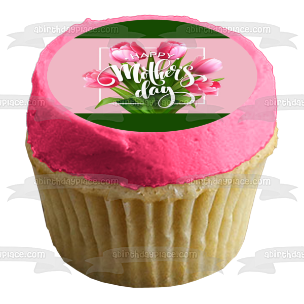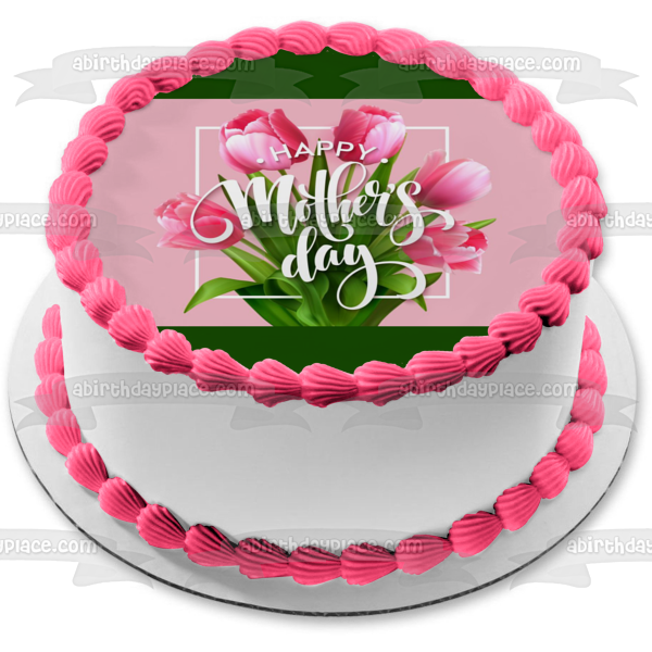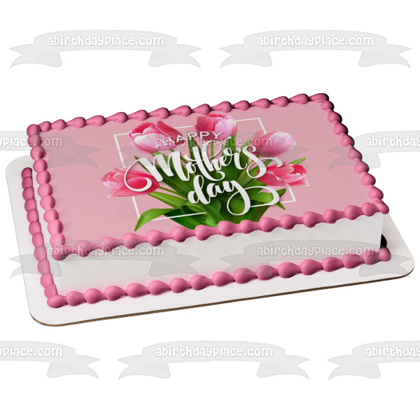 Decorate your Cake with this Happy Mother's Day themed Edible Cake Topper Image featuring a Bouquet of Pink Roses!