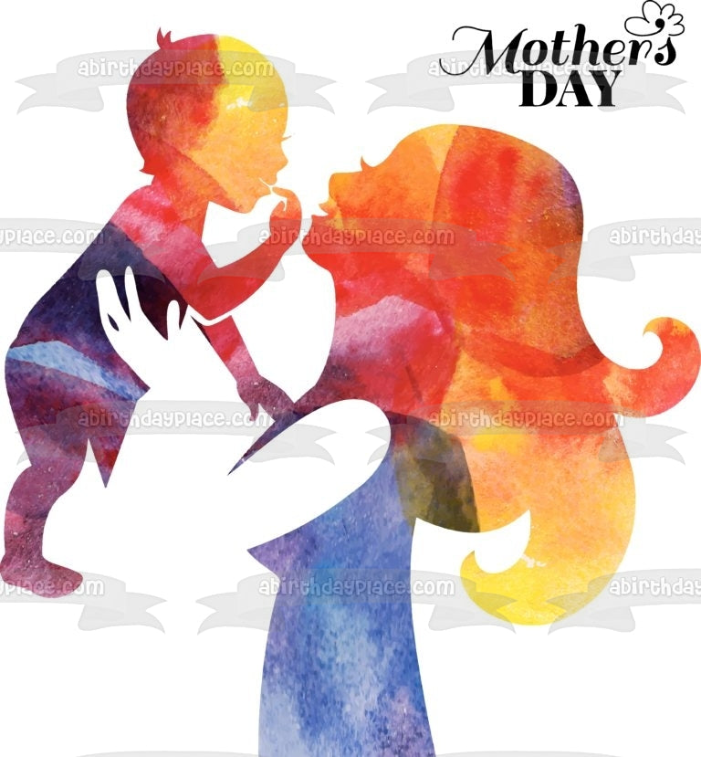 Decorate your Cake with this Happy Mother's Day themed Edible Cake Topper Image featuring a Colorful Mom and Baby Silhouette!